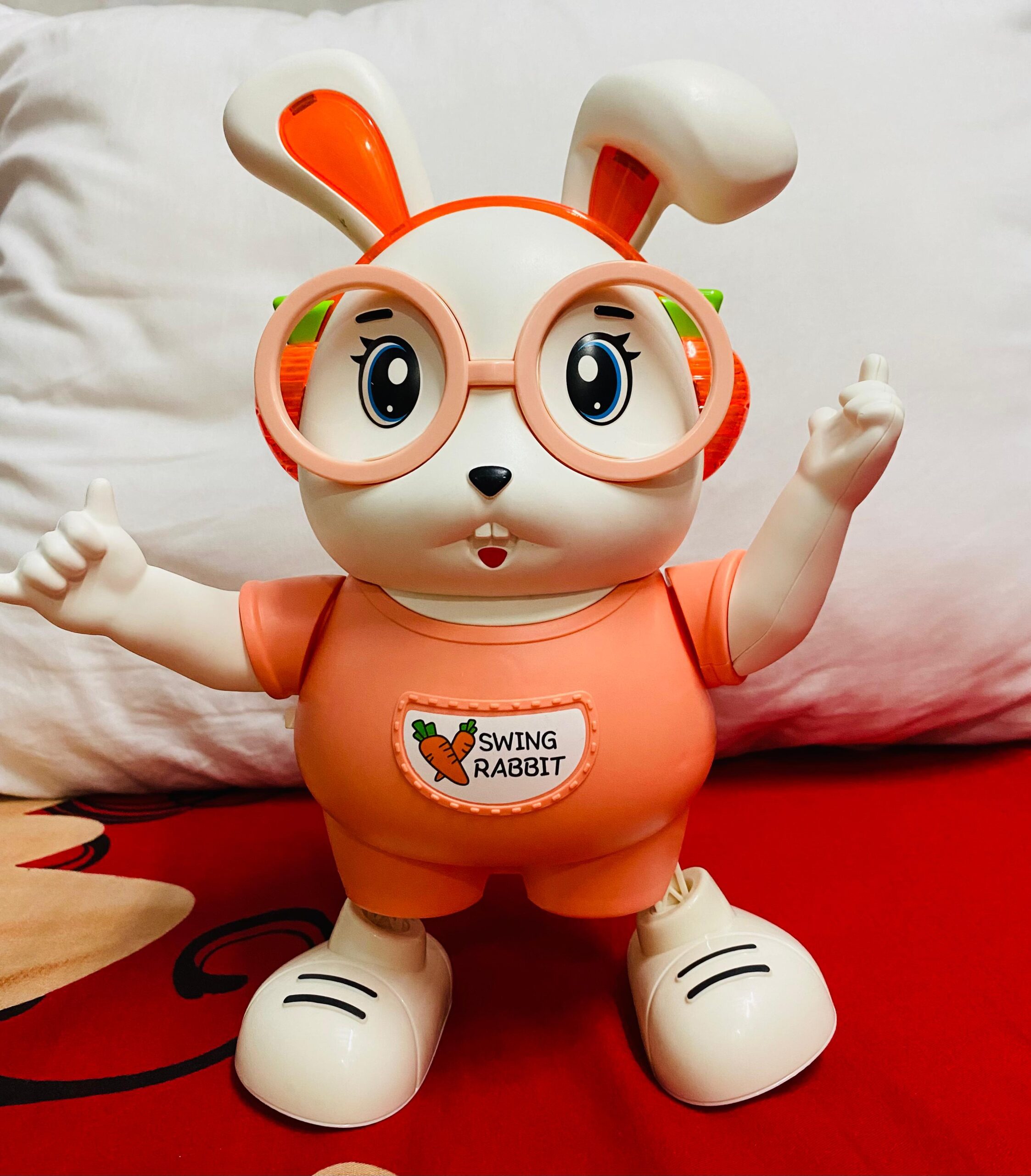Dancing rabbit toy, which can move up and down, swinging arms up and down, you can choose to glow at rest, or dance to music and lights.